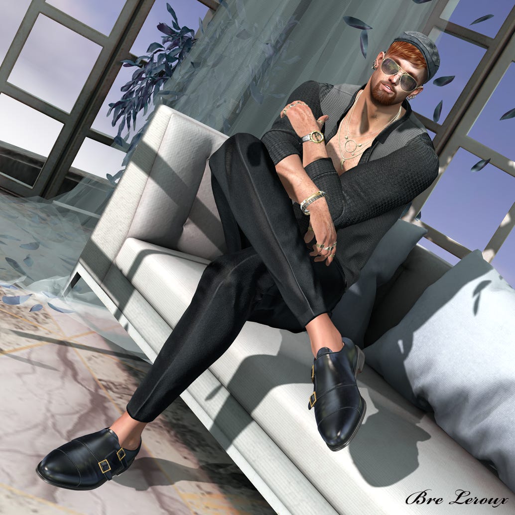 Available at the Manhood Event, these stylish shoes are rigged for Gianni, Jake, Kario Fit/Flex, and Legacy, as well as an unrigged pair. The included HUD in the Luxury Pack comes with 12 textures for the shoes, 4 for the seams, 3 internal textures, 2 textures for the soles, 6 metal textures, 12 sock testures, as well as the option for no socks, long and short.