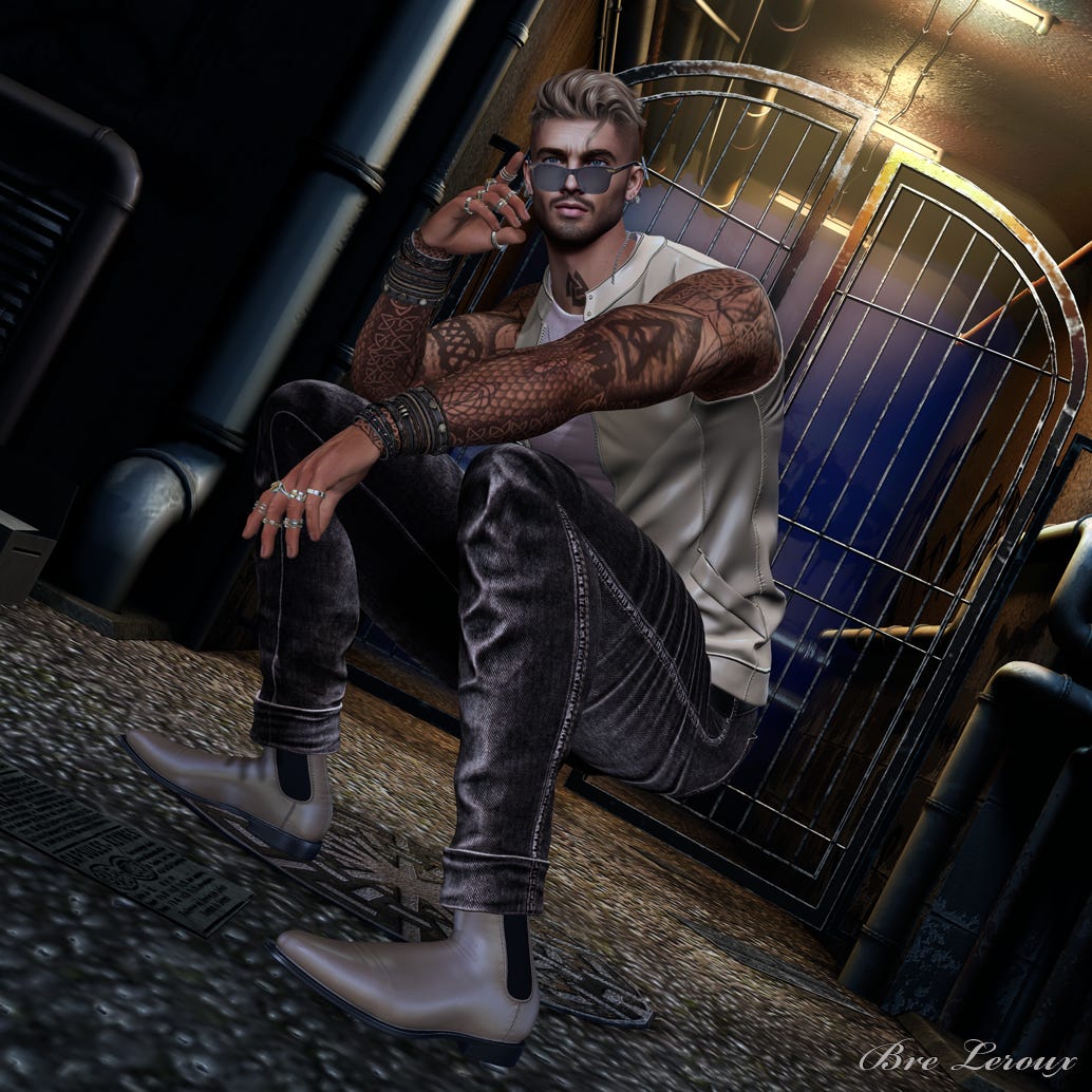 Available at the Alpha Event, these stylish boots are rigged for Gianni, Jake, Kario, and Legacy. The included HUD in the Luxury Pack comes with 12 textures for the shoes, 9 for the inset panels, 4 for the sewing, and 2 for the soles.